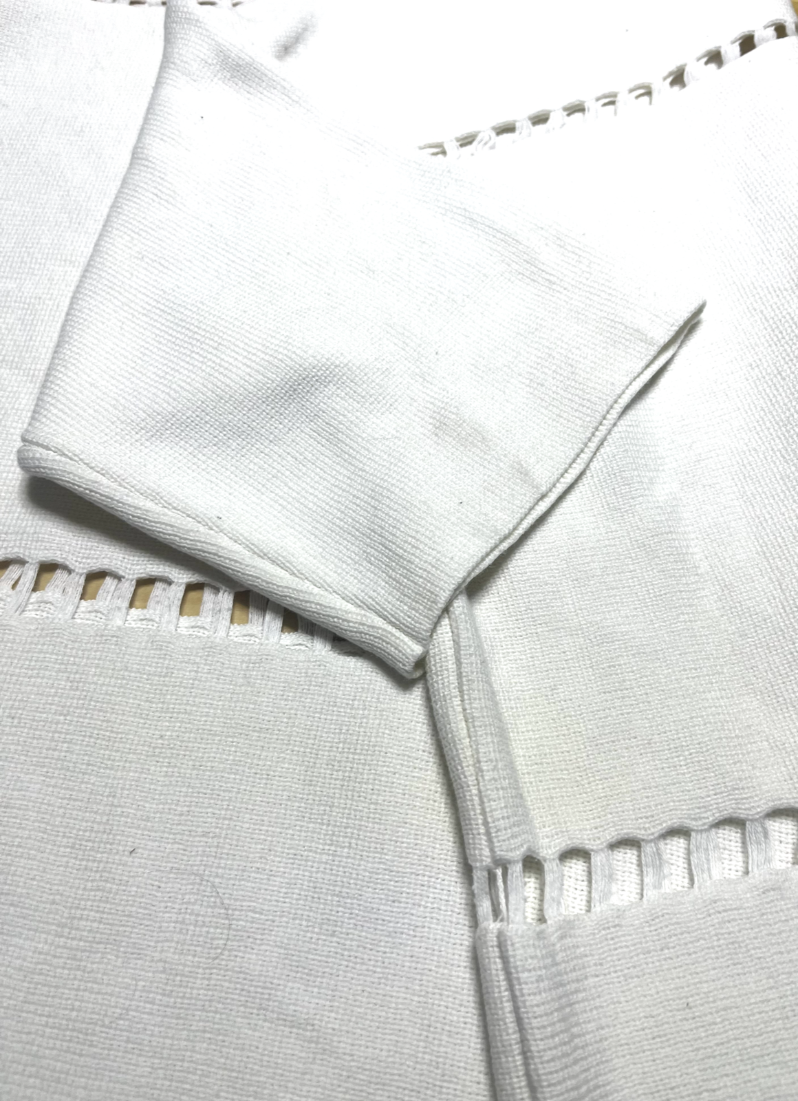 Beautiful high neck jumper in boho/scandi style. Oversized fit. Little longer at back. Small side splits. Soft thin knit with open knit contrast. Colour is light cream or creamy white. Colours may look a bit different in different light settings.