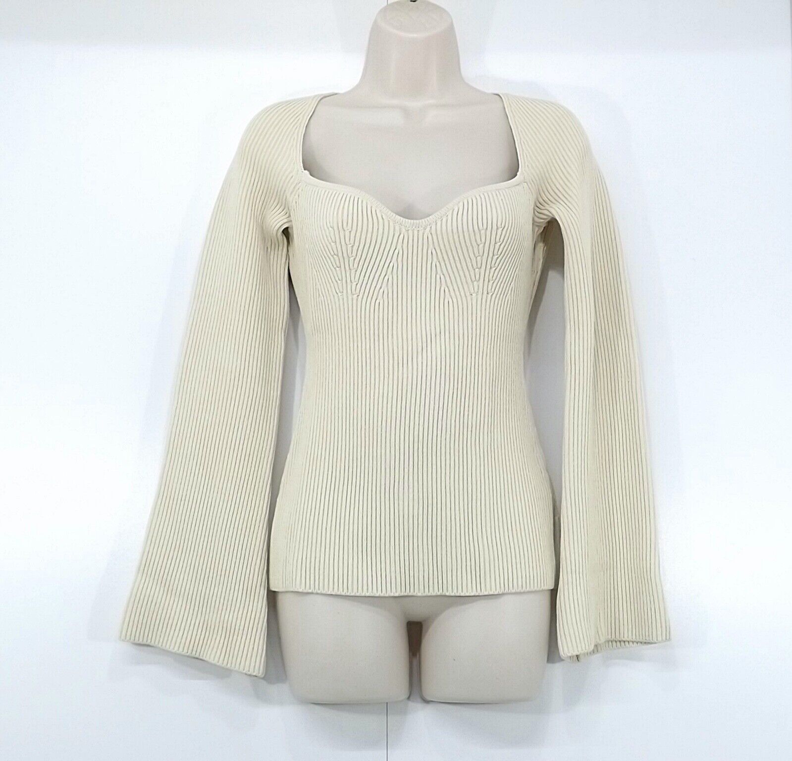 H&M Ecru Beige Classic Retro Style Women's Sweetheart Neck Jumper UK 8 10 S