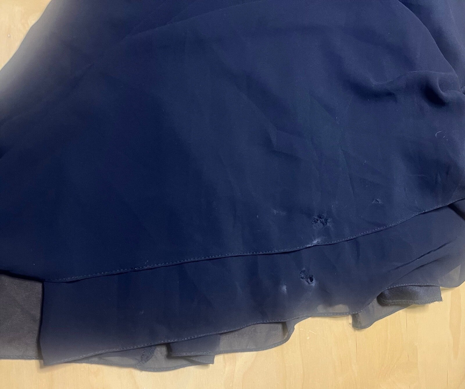 Condition: new. However there are two holes at hem, possibly someone tried it on and stepped on hem with stiletto - hence the price.
