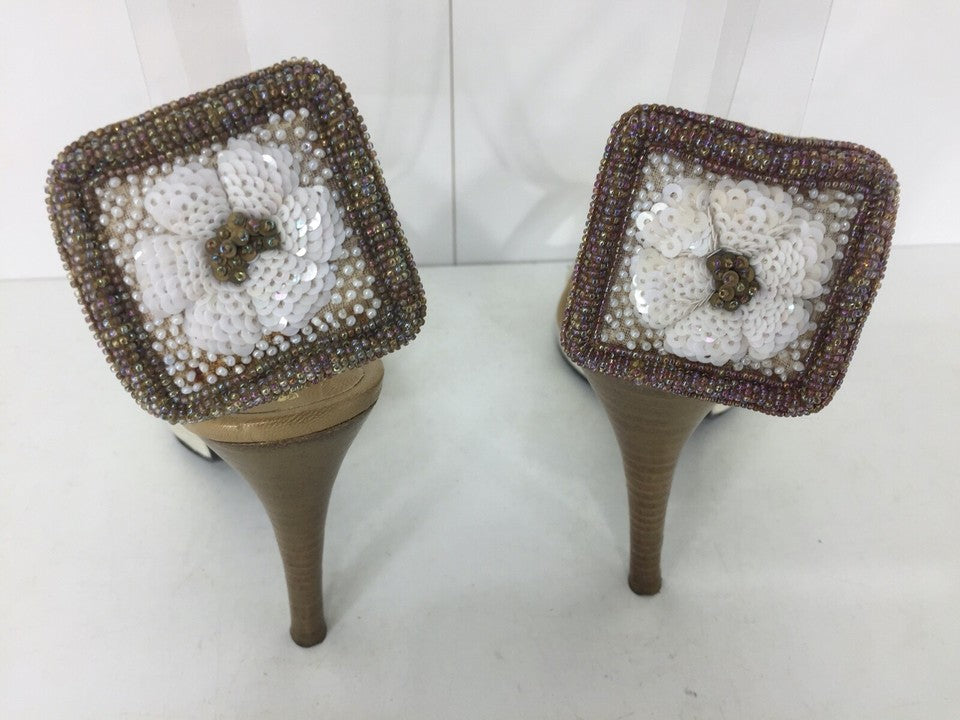 STEPHANE KELIAN Vintage Beige Gold LEATHER Women's Slingback Stiletto Sandals UK 3.5